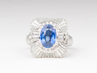 ♥ Stunning Platinum Ring 2.186ct Sapphire with 1.36ct Baguette Diamond Halo Heavy 10.8g PT900 V1188