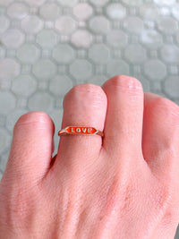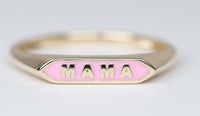 ♥ Solid gold personalization signet letter ring with enameled letters on the face of the ring