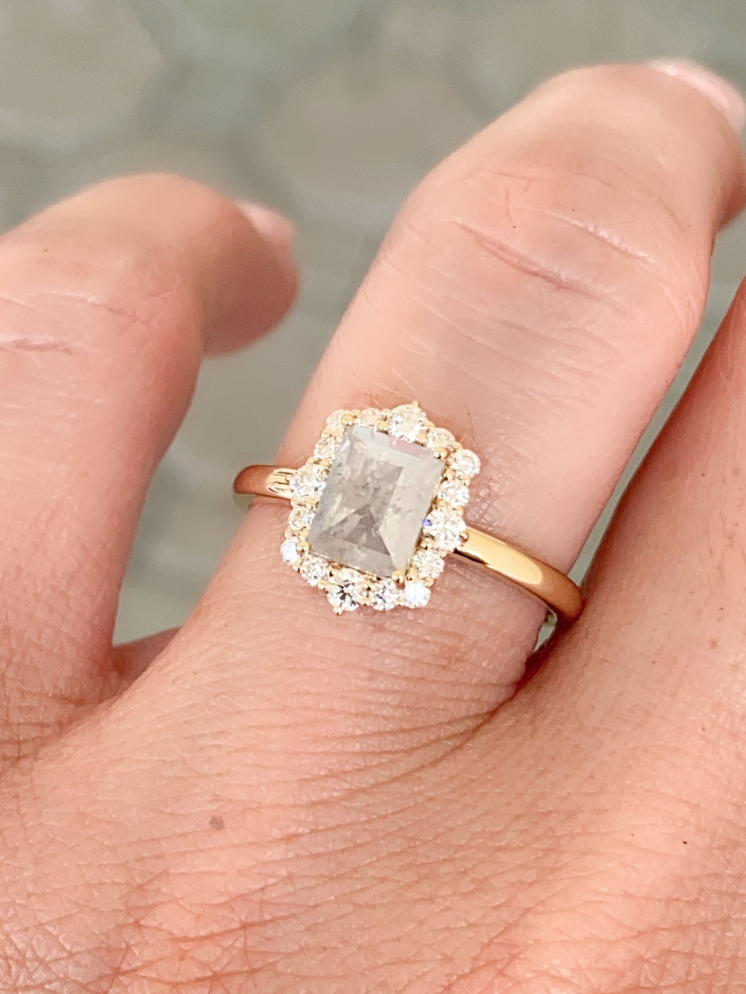 ♥ 1.39ctw Opalescent Natural Diamond with Halo Engagement Ring 14K Gold