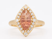 ♥ Gemstone: Center sunstone weighs 1.49ct; diamonds in the halo measure 0.36ct