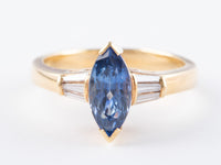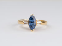 ♥ 1.73ct Marquise Sapphire and Baguette Diamond 18K Gold Engagement Ring V1173