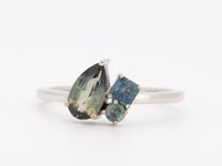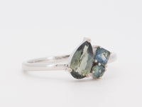 ♥ 14K White Gold Bi-Color Montana Sapphire Cluster Ring Asymmetrical Unique R6801