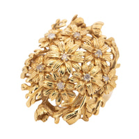♥ 18K Gold Daisy Flower Cluster Ring with Diamond 9g+ Stunning Three-Dimensional Floral Design R6709