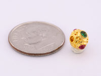 18K Gold Filigree Bead 7mm Size with Red and Green Gemstone R4499