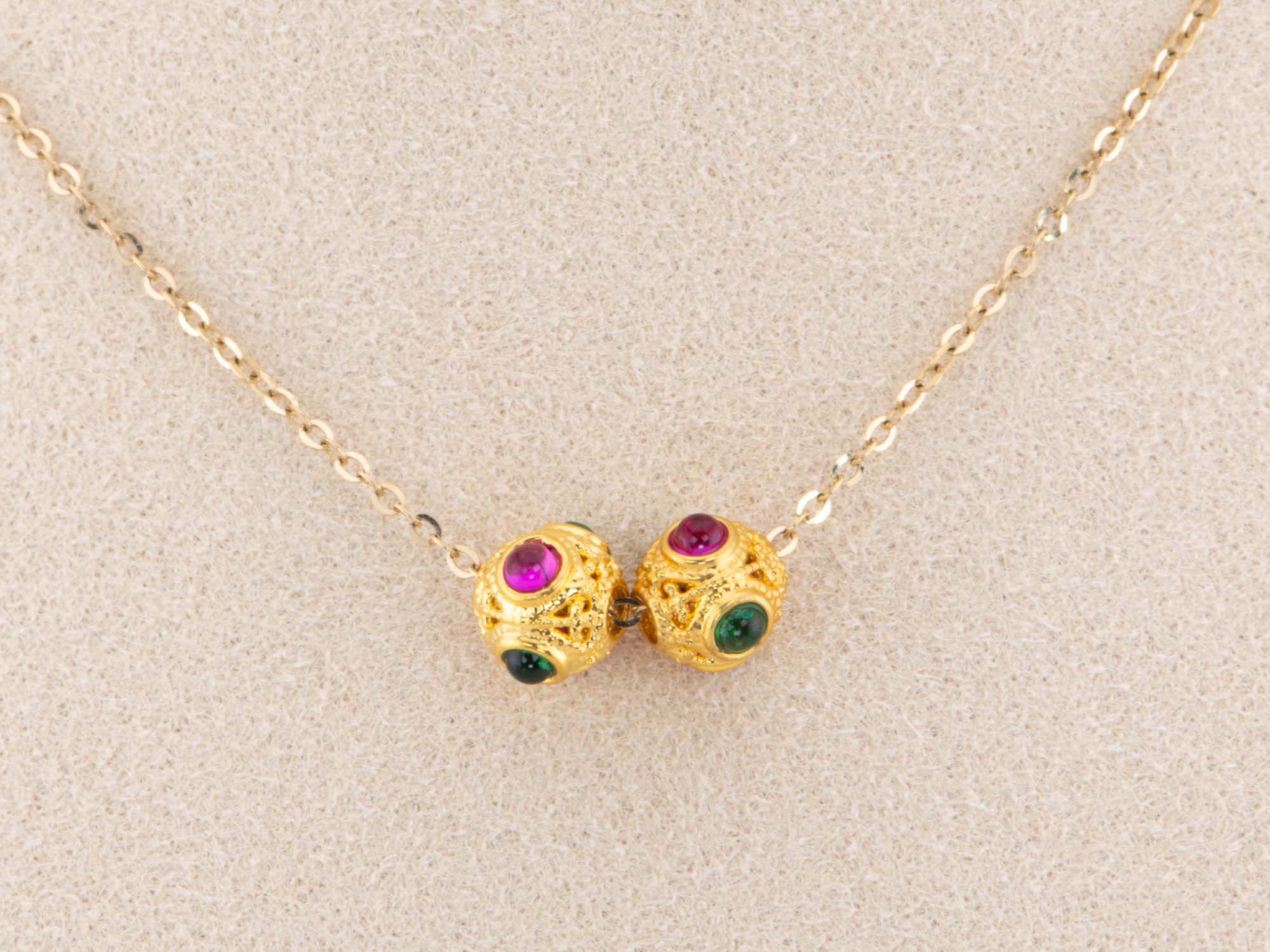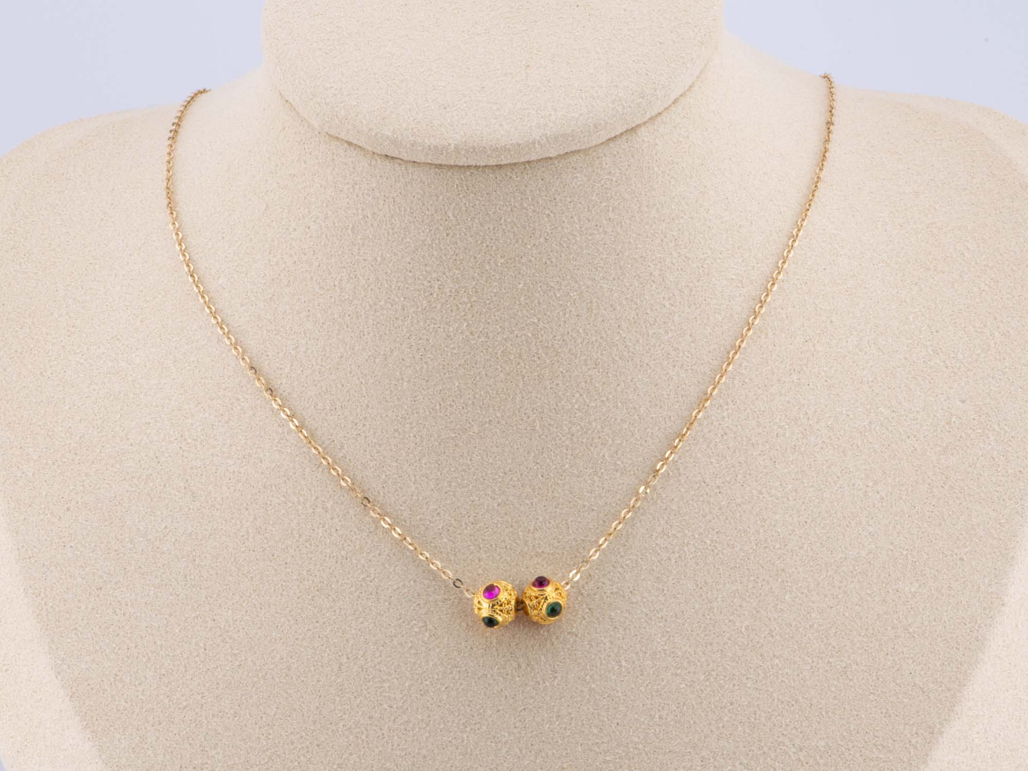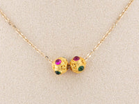 ♥ 18K Gold Filigree Bead 7mm Size with Red and Green Gemstone R4499