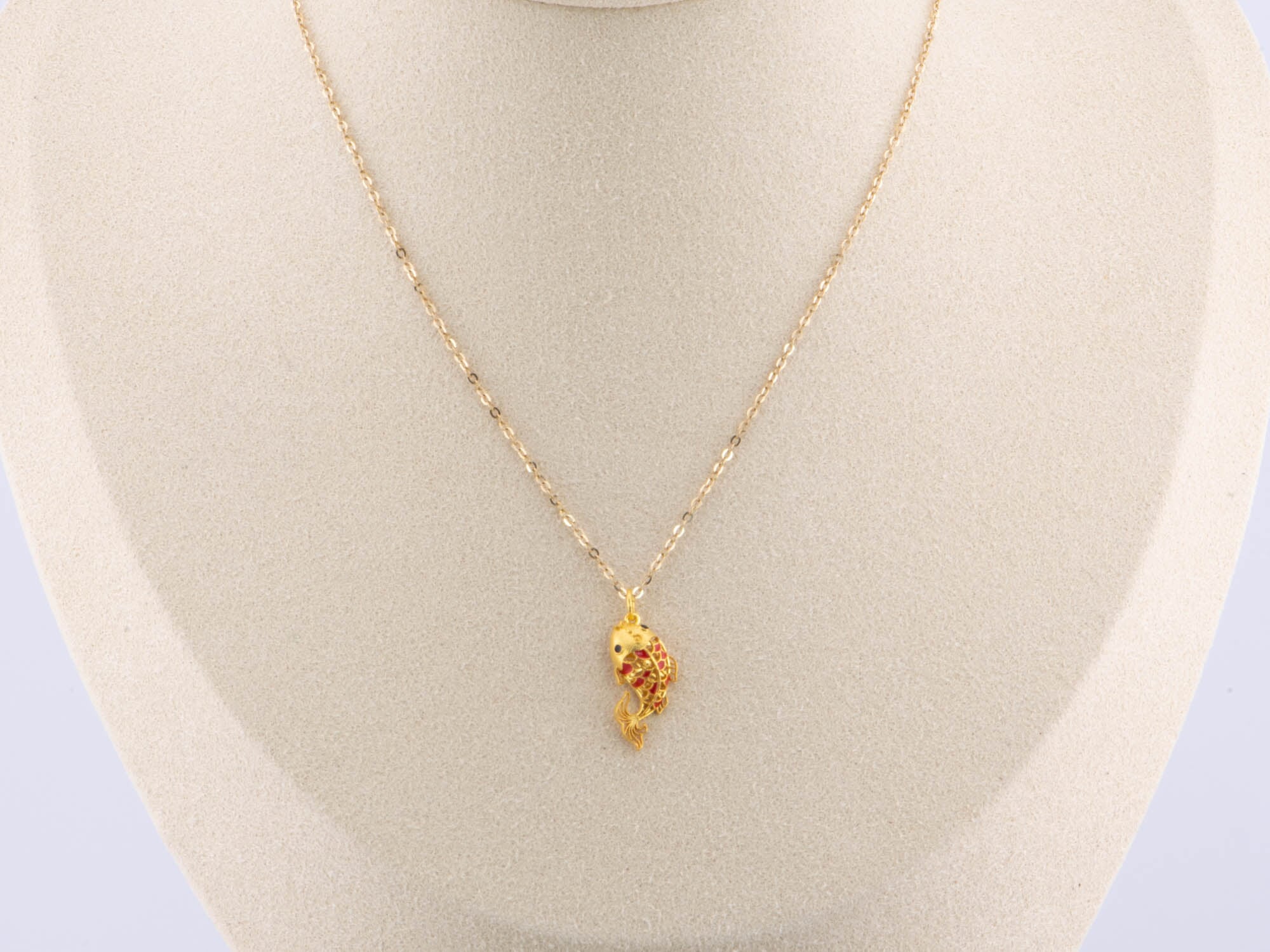 ♥ 18K Gold Goldfish Koi Fish Charm with Colorful Enamel Scale Design Asian Oriental Influenced R4486