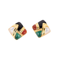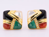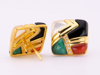 These stunning 18K Gold Onyx Malachite Agate and Mother of Pearl inlay earrings with diamond accents offer an irresistible combination of exquisite modern style and timeless classic beauty. This combination creates an unmistakably elegant and exclusive look for any occasion.