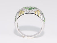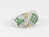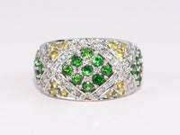 ♥18K White Gold Wide Band Micro Pave Green Garnet and Diamond Ring 8g Tsavorite Grossular R6710