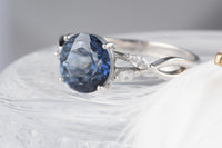 ♥ A beautiful natural tanzanite is set in the center, with a nature-inspired band adorned with leaf-shaped natural diamonds