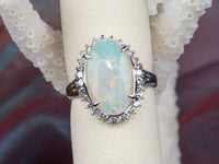 ♥ 2.54ct Solid Australian Opal with Diamond Halo Ring Platinum 6g+ V1160