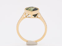 ♥ 3ct Green Tourmaline Diagonally Set 14K Gold Engagement Ring with Diamond Band R6804