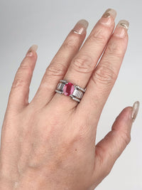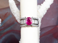♥ Heavy Platinum Ring 1.77ct Ruby on Stunning Baguette Diamond Band 12.6g R6786