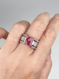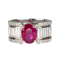 Heavy Platinum Ring 1.77ct Ruby on Stunning Baguette Diamond Band 12.6g R6786
