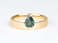 ♥ Teal Sapphire on Wide Band 14K Gold Engagement Ring Hand Brushed Finish  R6785