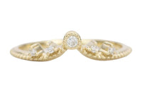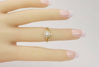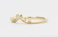 ♥ Solid 14K gold ring set with 5 diamonds in a delicate beaded style curve crown.
