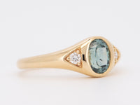 ♥ 1.03ct Montana Sapphire and Diamond Signet-Style Ring 14K Gold R6750