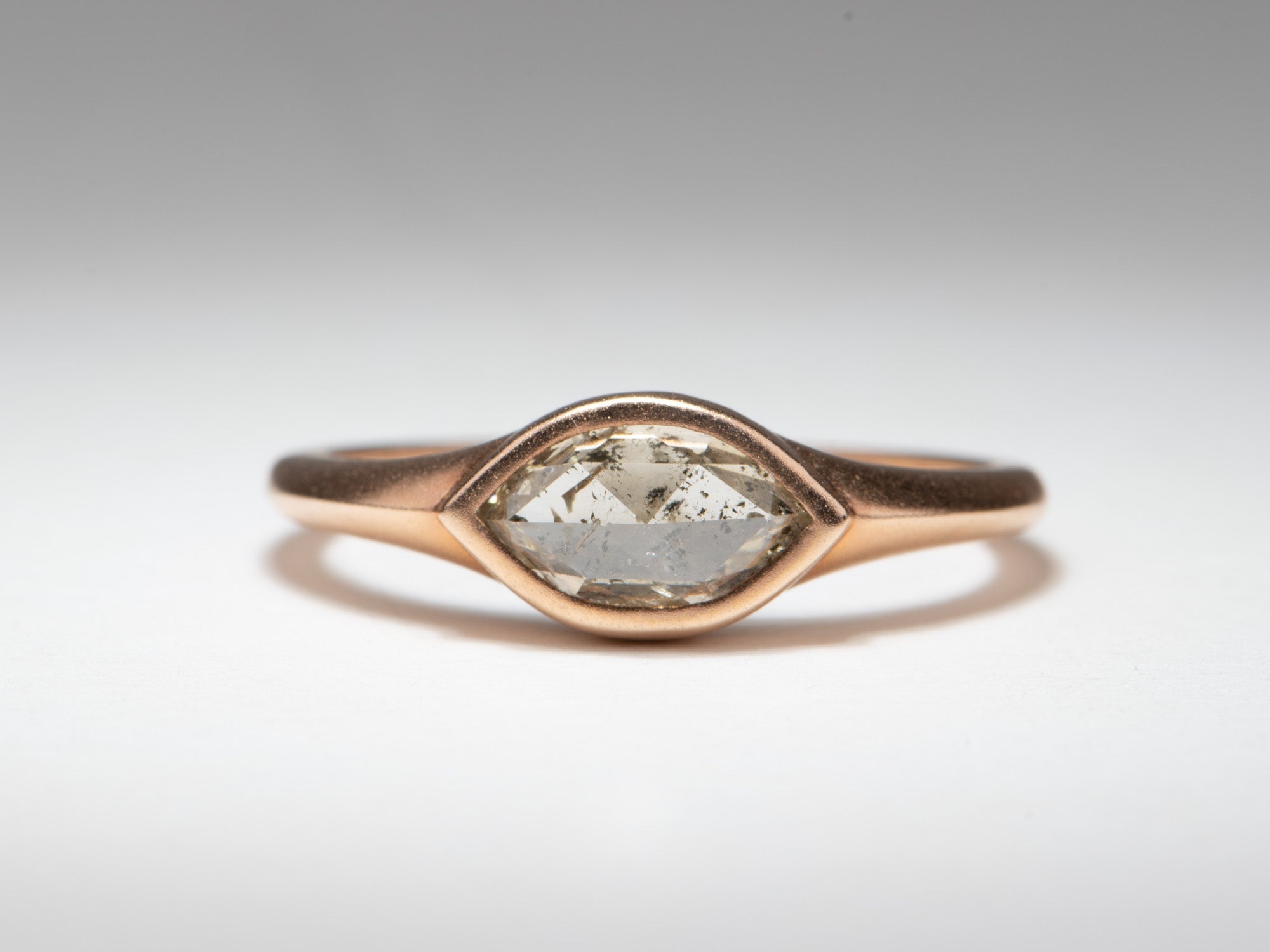 ♥ Solid 14K yellow gold ring set with a beautiful marquise-shape gray diamond