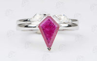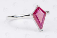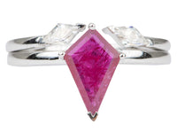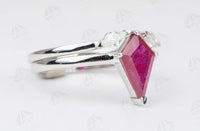 ♥ This is quite a statement ring with a beautiful kite shaped Ruby set in solid 14K white gold.