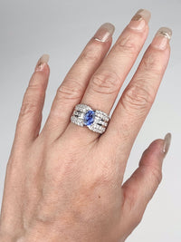 ♥ 1.53ct Sapphire on Wide Diamond Band Platinum Engagement Ring PT900