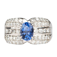 ♥ 1.53ct Sapphire on Wide Diamond Band Platinum Engagement Ring PT900 Heavy 11.4g R6787