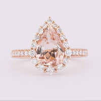 ♥ 1.64ct Soft Pink Morganite 14K Rose Gold Engagement Ring with Diamond Halo
