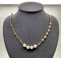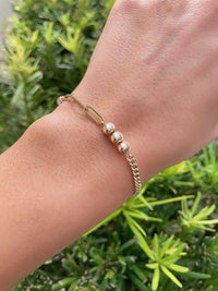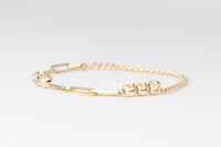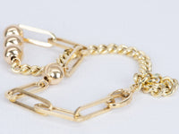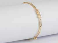 ♥ Solid 18k gold AB half and half paperclip and sparkly bead bracelet