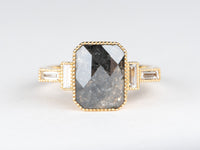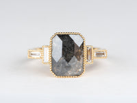 2.11ct Salt and Pepper Diamond with Baguette Sides Modern Engagement Ring 14K Gold R6698
