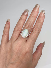 ♥ 2.54ct Solid Australian Opal with Diamond Halo Ring Platinum 6g+ V1160