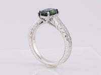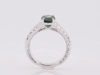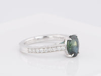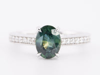 ♥ Solid 14k white gold ring set with a stunning 2.16ct teal sapphire atop a cathedral setting with milgrain details