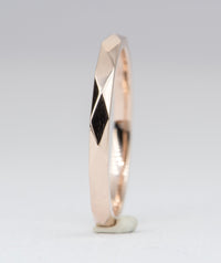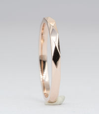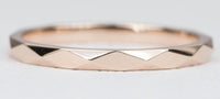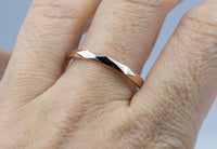 ♥ Solid 14K gold wedding band with a unique geometrical facet/wave design on the surface of the ring