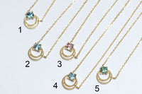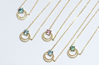 ♥ 3mm Montana Sapphire Crescent Moon 14K Yellow Gold Pendant Necklace
