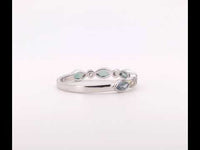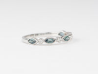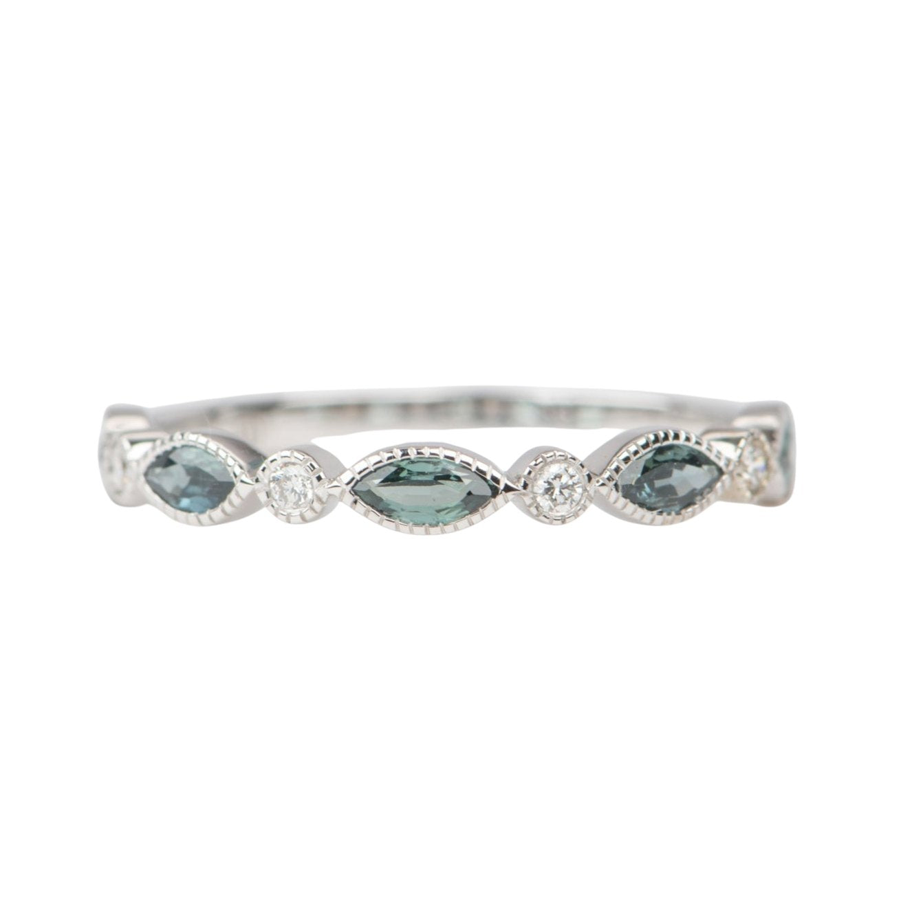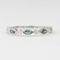 ♥ Alternating Montana Sapphire and Diamond Milgrain Bezel Set Wedding Band 14K White Gold Delicate September Birthday Anniversary Gift R5091