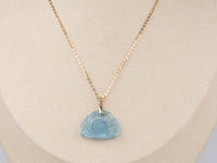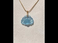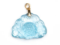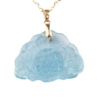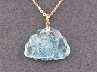 ♥ Aquamarine Carving Lotus Flower Pendant with 18K Gold Bail Carved R4677