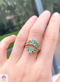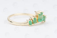 ♥ This is a unique wedding band featuring beautiful baguette-cut emeralds