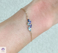 ♥ The sapphires are earth-mined and received standard heat treatment. They exhibit a range of colors from blue to green to purple. The sapphires we use for each bracelet will vary slightly in color and shade, but we will make sure each bracelet includes at least one blue, green, and purple sapphire.