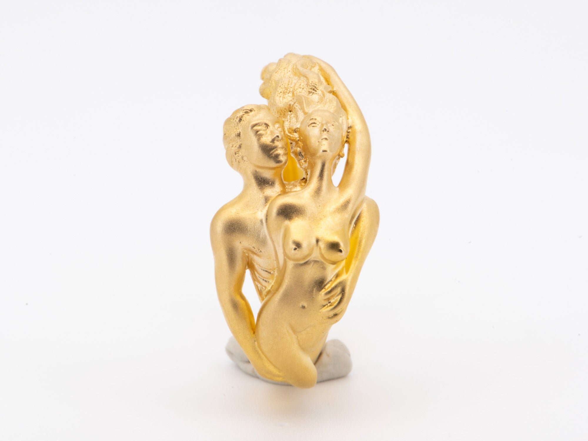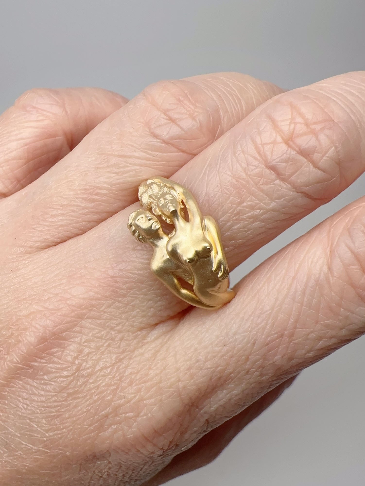 ♥ Carrera Style 18K Gold Ring Sculpted Man and Woman Intertwined 7.51g Sculptural Hand Carved Sculpture Art Jewelry Unique OOAK R6738