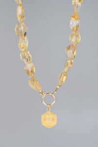 ♥ Citrine Faceted Nugget Bead Hand Knotted Necklace with 14K Gold Sailor Clasp P1085