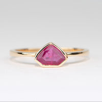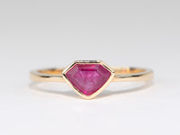 ♥ Solid 14K gold ring set with a unique shaped rosecut ruby in bezel set