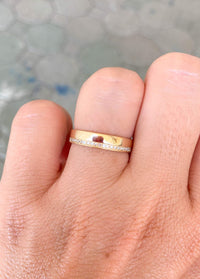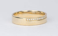 ♥ This is a unique design where half of the ring is set with half eternity diamonds, and the other half is intentionally left in plain gold and brightly polished, creating a contrast and modern look.