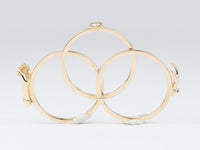 The symbol of two clasped hands is an ancient and sentimental design that has historically been associated with fidelity and marriage. Interlocking "Fede" rings (from Italian, for "trust" or "fidelity") or "Gimmel" rings (meaning "twin") were often used as betrothal tokens in the 16th and 17th century Europe. They remained popular until well after the Renaissance. Two or three bands are riveted together by a tiny pin that allows the separate components to swivel apart and also to come together as one - a tidy symbol of the union of two people.