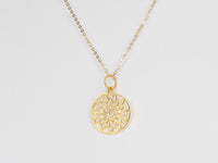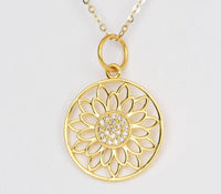 ♥ A solid 14K yellow gold filigree Lotus flower pendant with micro pave diamonds