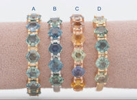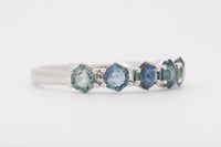 ♥ Solid 14k gold ring set with beautiful hexagon-shaped Montana sapphires in the most amazing range of colors unique to this locality