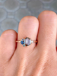 ♥ Gemstone: Hexagon Montana Sapphire, 0.79ct, Diamond, 0.11ct, Alexandrite