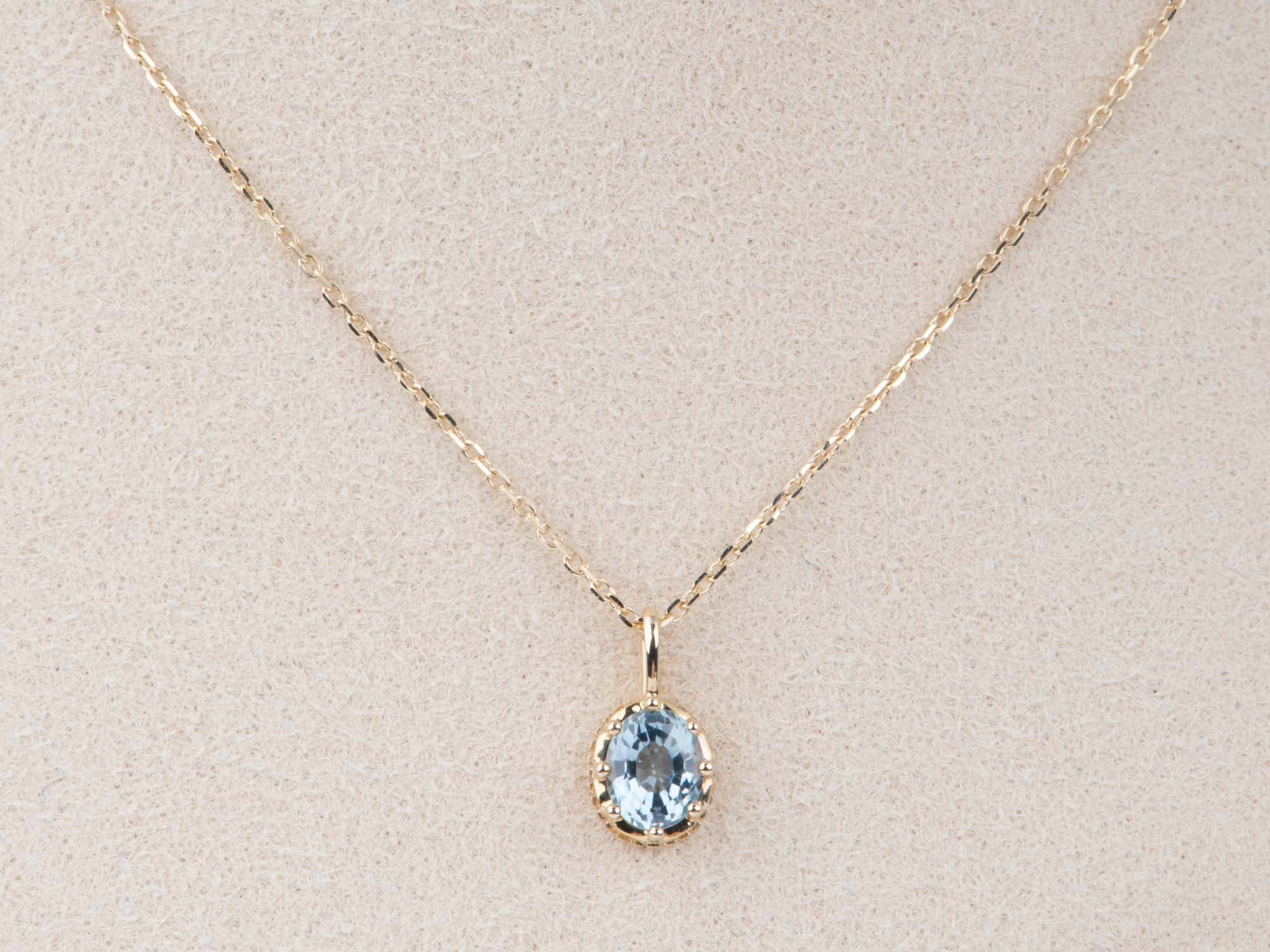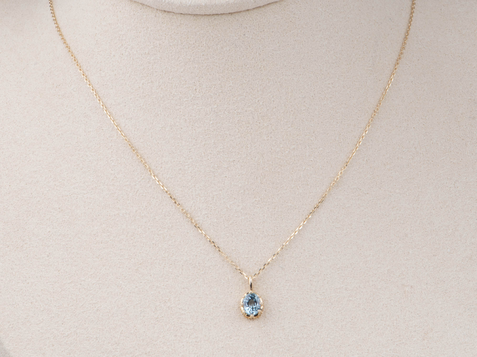 ♥ This is a dainty necklace featuring an oval Montana sapphire set in a vintage-inspired lace edge setting