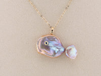 ♥ This is a super unique creation using two pieces of natural freshwater pearls secured with an internal screw. One pearl acts as the body, the other as the tail. The eye is dotted with a black cz gemstone.
