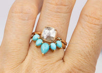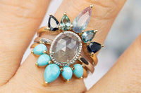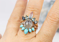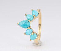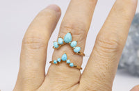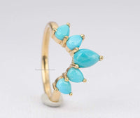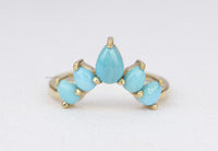 ♥ New version of our popular crown ring with pear-shaped turquoise cabochons! Five turquoise stones form a gentle curve that will hug your engagement or solitaire ring so beautifully!