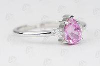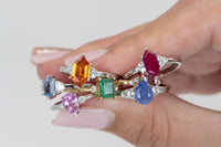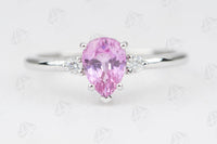 ♥ A beautiful pear-shaped sapphire is set in the center and flanked by two moissanites on the sides