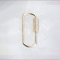 ♥ This is a solid gold carabiner pendant enhancer with diamond pave that includes an opening that can be screwed open to hook on one or multiple charms