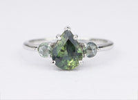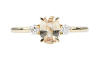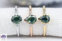 ♥ This is a simple three-stone ring setting, made to accommodate a center stone of any shape, with one stone set on either side of the main stone. The center stone can be a standard cut (pointy bottom), or a rose cut stone (flat bottom).
