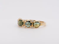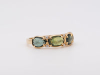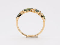 ♥ An organic style band set with teal-color rose cut sapphires and moissanites for accent